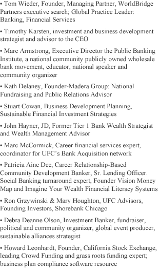 See our list of financial, legal, business development, media, education and community relations advisors and partners below. See our list of RCI team and coordinators.